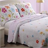 GL-1003FQ Size: Full / Queen Features: -Available in Twin or Full / Queen sizes. -Twin set includes one quilt and one sham. -Full/Queen set includes one quilt and two shams. -Material: 100pct Cotton. -Large flowers grow from the foot of the bed and on the pillow sham(s). -Flower blossoms adorn the quilt all over, front and back. -Reverses to a soft lavender. -Intensively quilted for style and durability. -Easy care machine washable. Specifications: -Twin: 68'' W x 88'' D. -Full / Queen: 90'' W x 90'' D. -King: 105'' W x 95'' D. -Sham: 20'' W x 26'' D. -King Sham: 20'' W x 36'' D. ...Read more